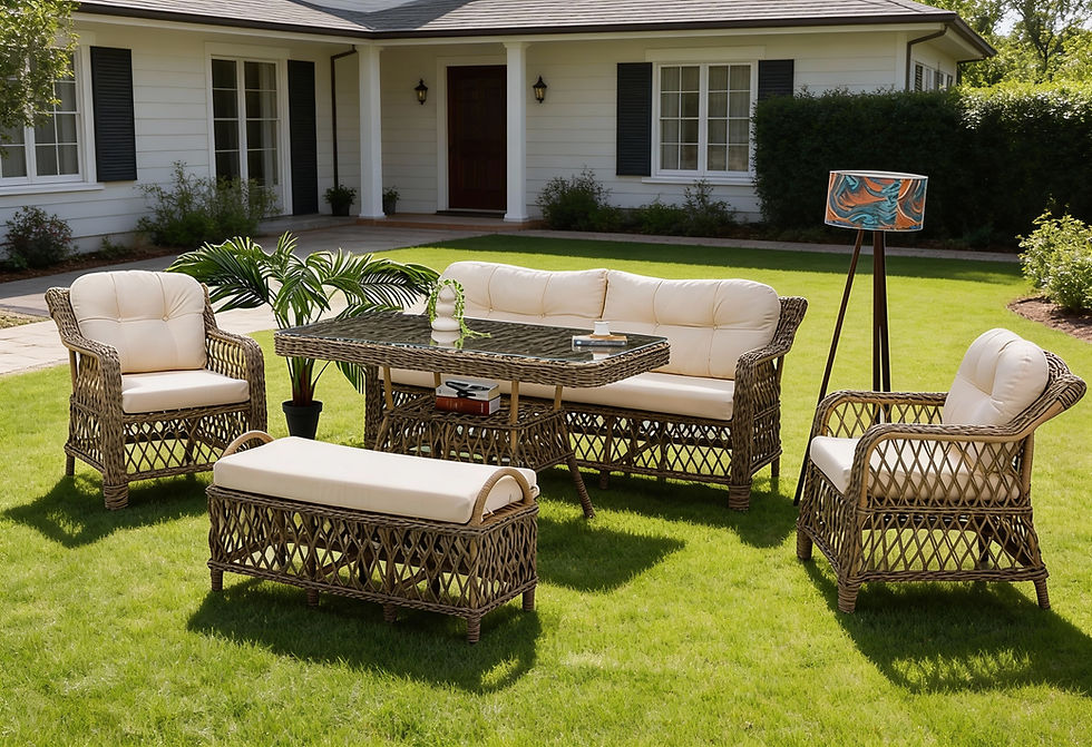Elina, zarif örgü detayları ve krem tonlu yumuşak minderleriyle bahçenizde ferah ve davetkâr bir atmosfer yaratır. Geniş oturum alanları, destekleyici minder yapısı ve cam yüzeyli sehpasıyla hem estetik hem de konforu bir arada sunar. Bahçe, teras ve veranda kullanımı için ideal; sade şıklığı sevenler için tasarlandı.